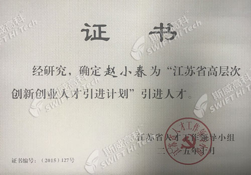 金雞湖雙百人才計劃 科技領(lǐng)軍人才 證書