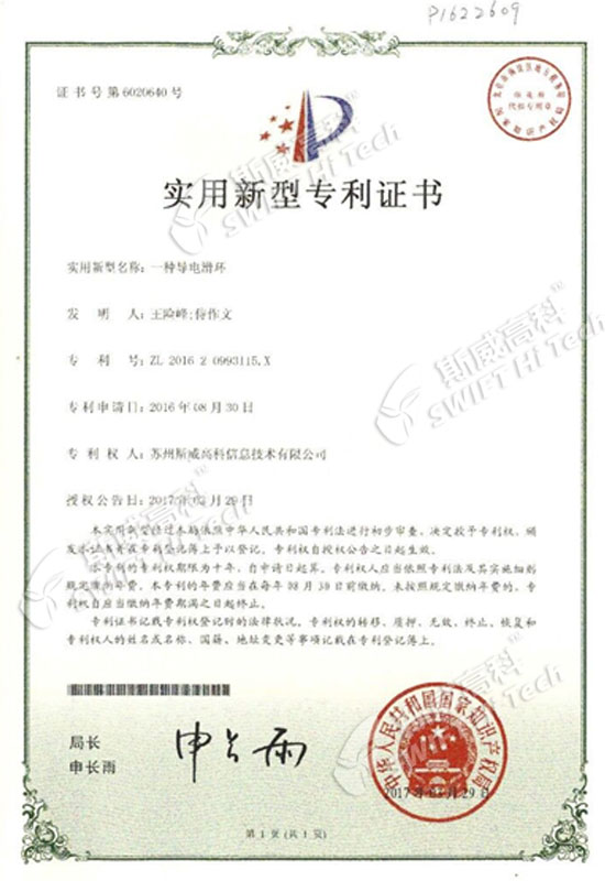 蘇州斯威高科信息技術(shù)有限公司 實用新型專利證書:一種導(dǎo)電循環(huán)