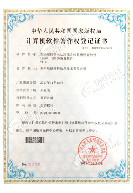 斯威高科變電站環(huán)境在線監(jiān)測設(shè)置軟件V1.0[簡稱:SD100設(shè)置軟件]