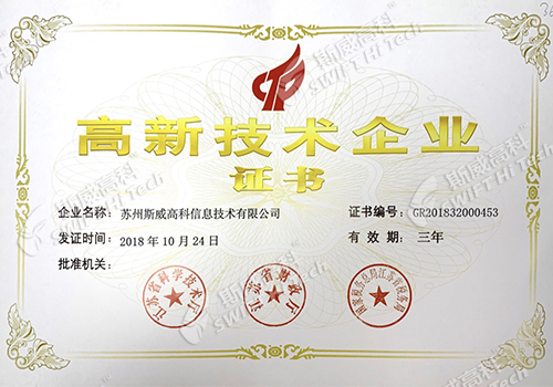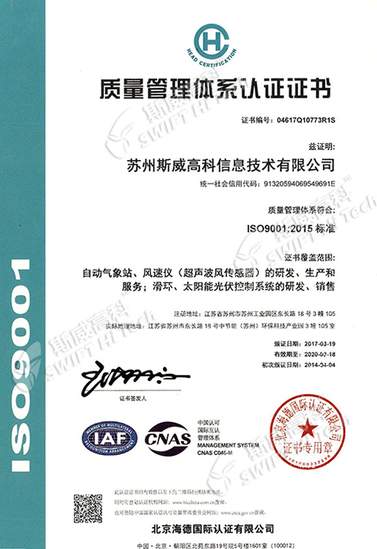 蘇州斯威高科信息技術(shù)有限公司 質(zhì)量管理體系認(rèn)證證書
